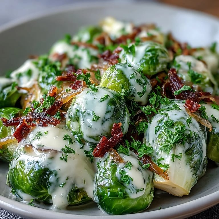 Save One evening, I served this alongside roasted chicken for a friend who was having a rough week. She sat quietly at the table, eating slowly, and then said the Brussels sprouts tasted like comfort she didn't know she needed. That moment reminded me that food doesn't have to be fancy to feel like care. Sometimes a warm skillet and a creamy sauce are enough to shift the mood in a room.