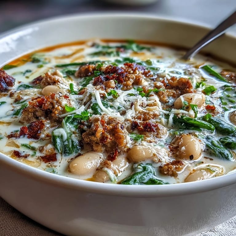 Save Warm up your evening with this Epic Creamy Tuscan White Bean Soup With Sausage. This rich and hearty dish combines tender cannellini beans, savory crumbled Italian sausage, and fresh baby spinach in a luxuriously creamy broth. Ready in just 30 minutes, it is the ultimate comfort bowl for any day of the week.