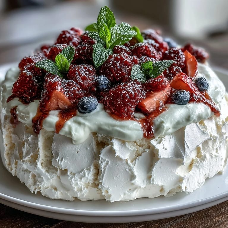 Save My mother stood in the kitchen doorway on a humid Sunday afternoon, skeptical about my pavlova ambitions until the oven door opened and revealed this crispy-edged, marshmallow-centered miracle. She'd always said meringue was temperamental, but watching her face light up when that first spoonful of berries and cream hit her fork made me understand why this dessert has graced celebration tables for generations. There's something almost magical about how egg whites transform into something so delicate and impressive, and I've been chasing that magic ever since.