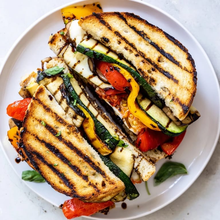 Save The first time I made this grilled cheese, my roommate walked into the kitchen and asked if I was making a Caprese salad or a sandwich. The smell of roasting peppers and zucchini had filled our tiny apartment, and honestly, I had not planned it that way. I just wanted something more than plain cheese on bread, but the vegetables came out of the oven sweet and slightly charred, and suddenly lunch felt like an event.