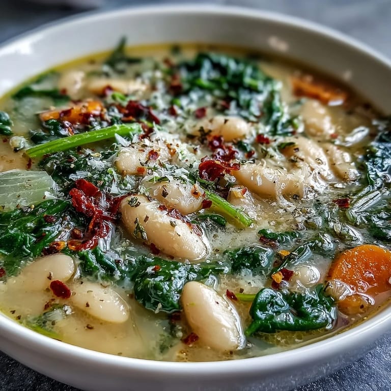 Save The aroma of simmering garlic and herbs always reminds me of relaxed summer afternoons when sunlight would stream through my kitchen window, warming the tile beneath my bare feet. Tuscan White Bean and Spinach Soup initially caught my attention because it promised something satisfying without weighing me down, and after tweaking it with what was hanging around in my fridge, it became a staple. The gentle bubbling of the slow cooker filled the house with an anticipation that made even the most mundane chores feel cozy. Sometimes, I’d find myself leaning over the counter, absentmindedly inhaling the fragrance while scrolling through my phone, thinking about a light meal to pair with a crusty loaf. This soup brings out the best in simple ingredients, truly showing that patience is its own reward in the kitchen.